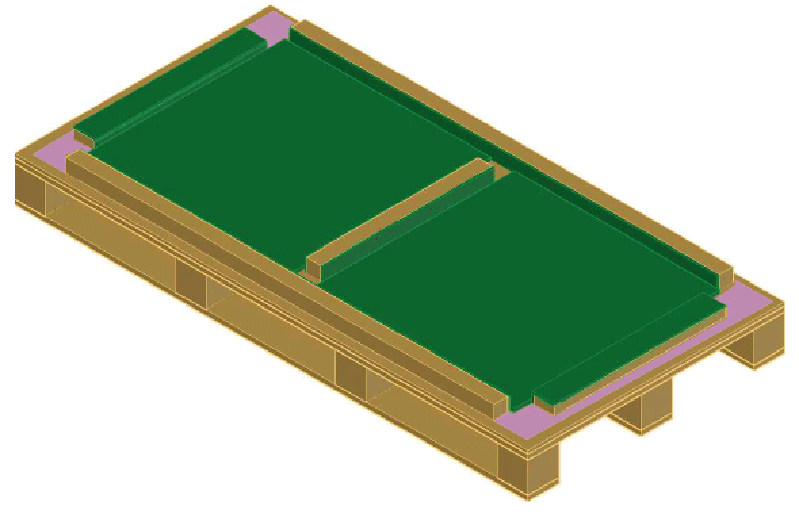 6、在木箱(xiāng)的長度(du)方向放(fang)置如圖(tú)所示4塊(kuài)紙護角(jiao),并在相(xiàng)應位置(zhì)打包,固(gù)定。